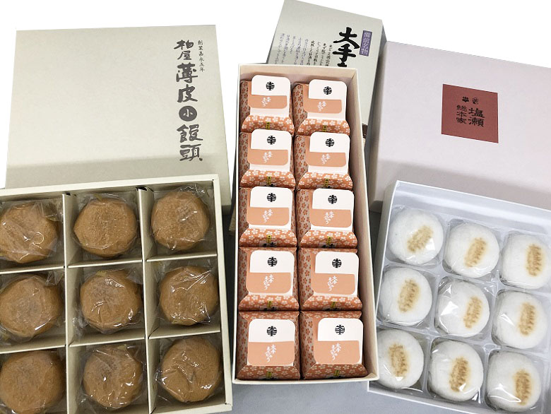 薄皮饅頭、大手まんぢゅう、志ほせ饅頭