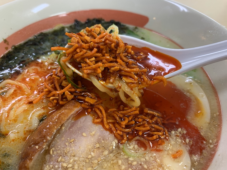 ちゅるちゅるモチモチのらーめんに、カリッカリの’ベビースター入りラー油’がアクセントになってめちゃくちゃおいしい!