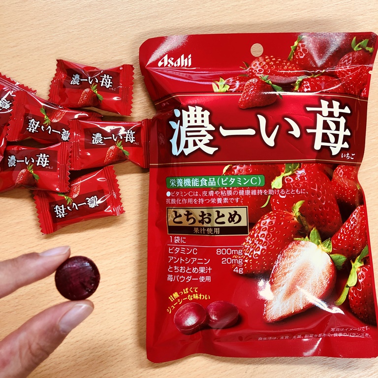 とちおとめ果汁を使用した甘酸っぱくてジューシーなキャンディ。