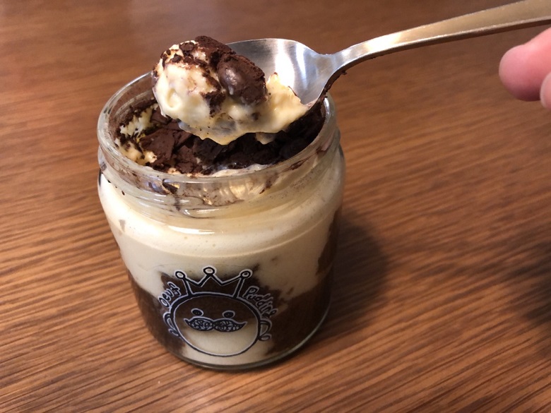 たっぷりのココアパウダーやエスプレッソに浸ったスポンジとプリンのバランスが絶妙で、ティラミス以上に好みかもしれない逸品でした。