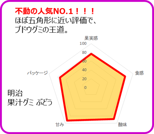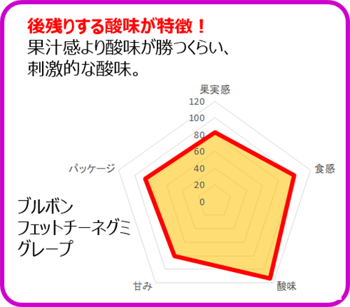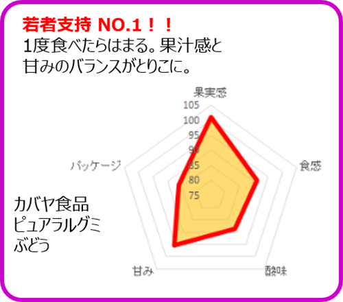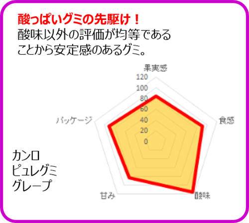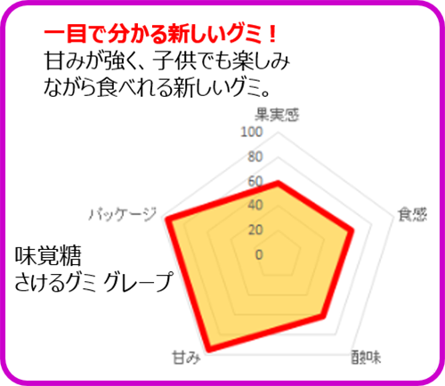 各種グミについて、アンケートの結果をもとに、チャート化してみました。
