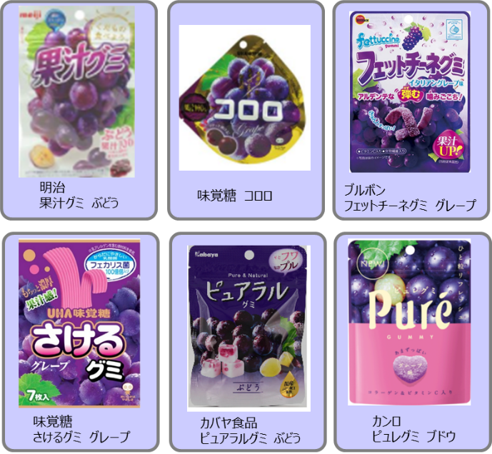 そこで、グミの中でも人気のフレーバー、「グレープ」味のグミについて、会社の女性陣で食べ比べを行なってみました。
