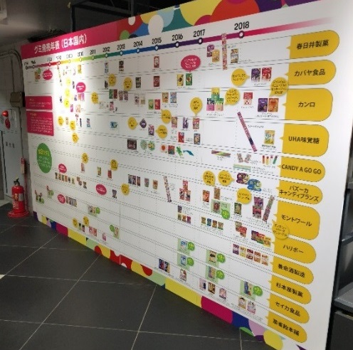 ↑会場に設置されたグミの発売年表。12社のグミの歴史が記載されていた。
