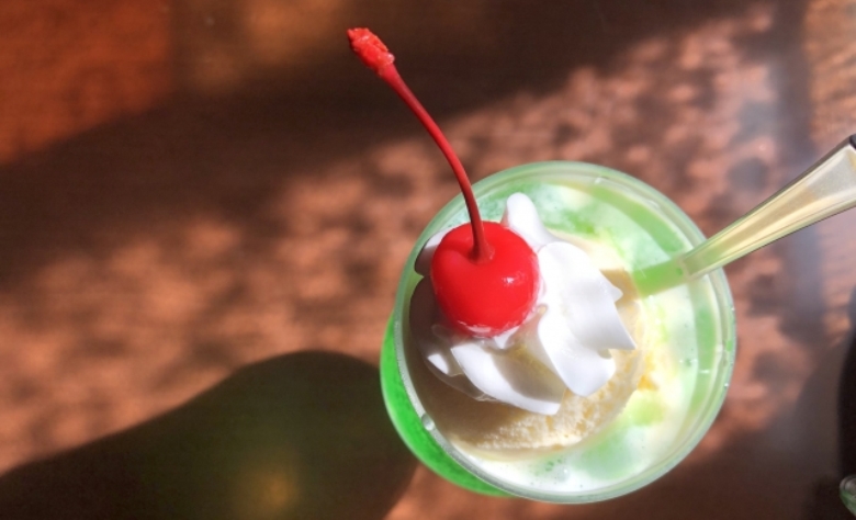 クリームソーダは舐めていると、だんだんコメダ珈琲店特製のソフトクリーム味が広がって、味の変化が楽しめます。