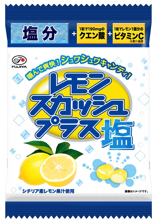 炭酸飲料「レモンスカッシュ」をイメージした爽やかなレモンの味わいに、夏にピッタリな機能として、「塩分」と「クエン酸」を加えたキャンディです。