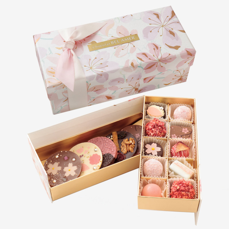 華やかな春をイメージした、ショコラやトリュフなどの詰め合わせボックスです。箱を開けるとふんわり桜の香りが。ストロベリーや桜の花のフレークが入っているものなど、一つ一つ違った風味が楽しめます。