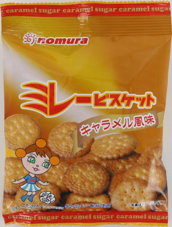青色のパッケージが目を引く、野村のまじめミレービスケットは最近いろいろなお店で見かけますが、筆者がこの場を借りてオススメしたいのは、このキャラメル風味の方なんです。