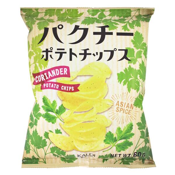 パクチーの風味をしっかり感じることができるポテトチップスです。お酒のおつまみにも合う一品。アジアンテイストのスパイスと、パリッとした食感がクセになること間違いなし!