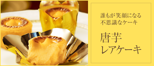 自社栽培した唐芋(別名サツマイモ)をレアケーキにしたもの。無添加で食感もやわらかいため、小さな子供からご高齢の方まで安心して食べることができます。ビタミンや食物繊維たっぷりで、身体や肌にも嬉しいお菓子です。