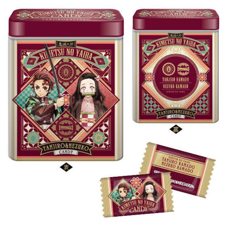 缶のデザインは、炭治郎・禰豆子たちメインキャラクターに加え、「柱」全メンバーをラインナップした全10種類。 ブドウ味のキャンディの個包装にもキャラクターのデザインが入っています。