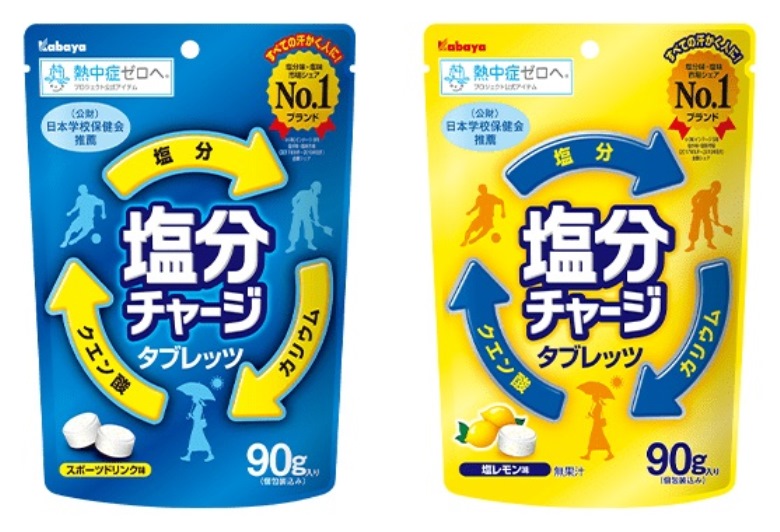 子どもから大人まで、スポーツや外出中などあらゆるシーンで、「手軽にすばやく塩分補給」することができる、「カバヤ 塩分チャージタブレッツ」。口の中でさっと溶けて、ベタベタしない、軽くて携帯しやすいタブレットタイプ。スッキリと食べやすいスポーツドリンク味で、いつでも気軽に熱中症予防対策できるお菓子です。