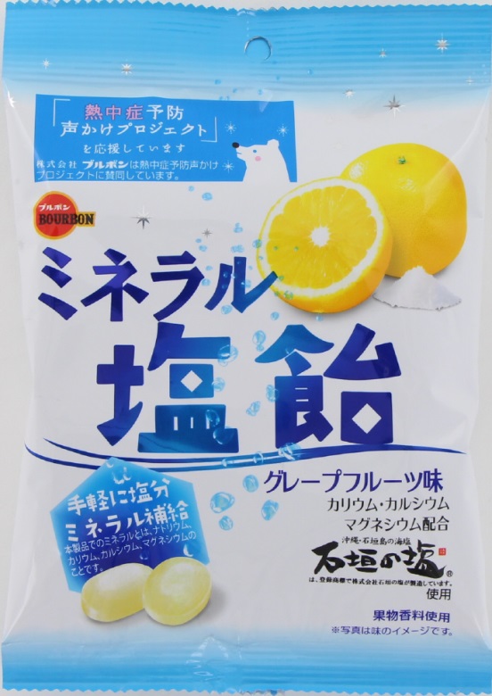 さわやかなグレープフルーツ味のキャンデーに、石垣の塩、ミネラル(カリウム、カルシウム、マグネシウム)が配合されたキャンディです。