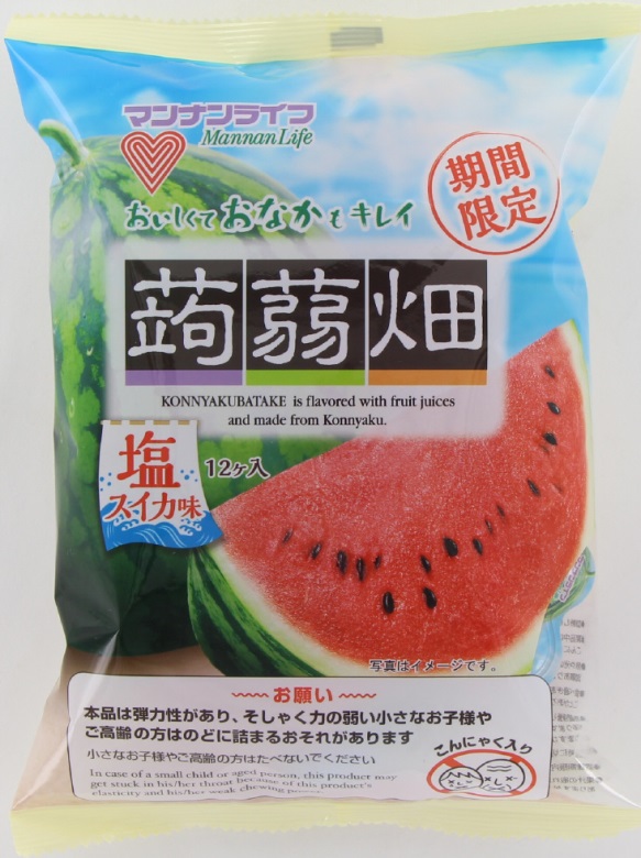 すっきりとした甘さと“すいか”のみずみずしさに、ほのかな塩感が加わった、夏でも食べやすい味わいの蒟蒻ゼリーです。