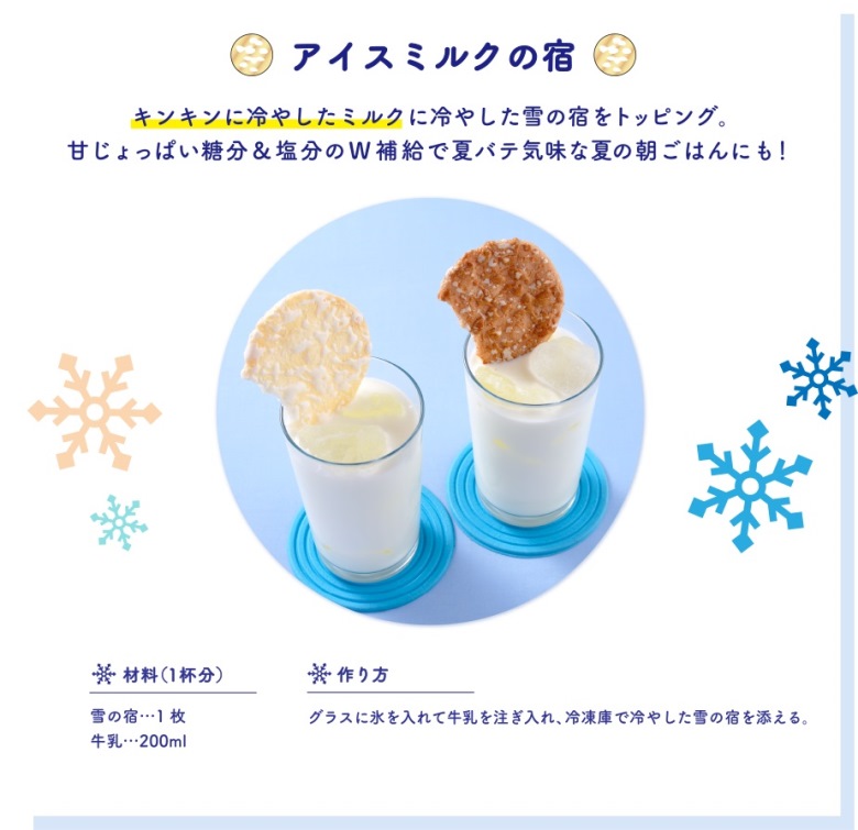 雪の宿では、「2020年夏の特別企画 納涼雪の宿」と題して、雪の宿を冷やして作るアレンジレシピ紹介や「氷点下の雪の宿」としてクール便で届く雪の宿のプレゼントキャンペーンを実施中です♪