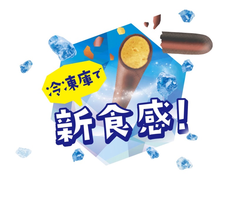 ポッキーシリーズを冷凍庫で冷凍して食べると、なんと1.5倍カリッとした新食感になり、ひんやり心地よい口当たりと共に、とっても美味しく食べられるそうです。
