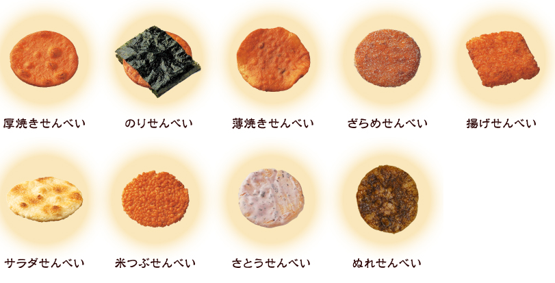 うるち米を原料とする米菓は、「おせんべい」といわれ、様々な食感のものがあります。
