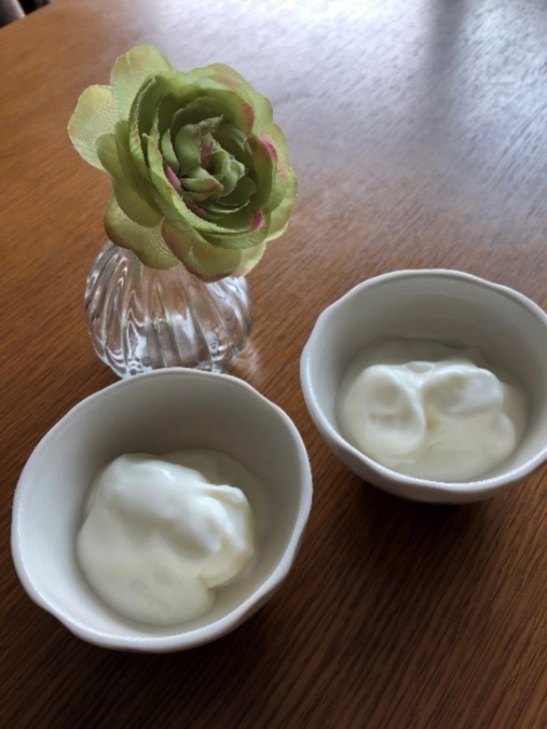 ① プレーンヨーグルトにマシュマロをお好みの量入れます。