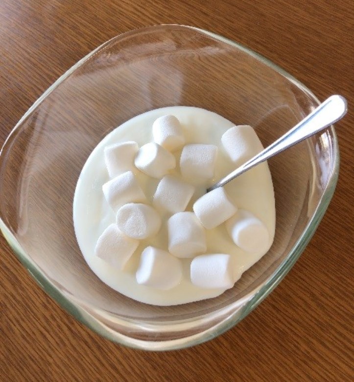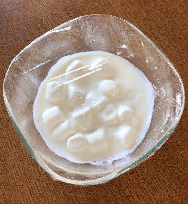 ① ヨーグルトにマシュマロを入れたらレンジで600Wで1~2分チン!