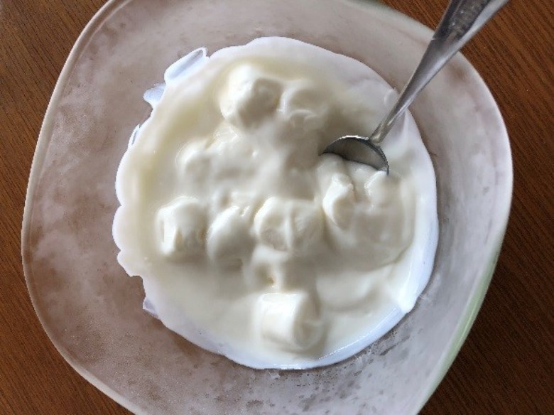 ヨーグルトに浸ったマシュマロをそのままパク!