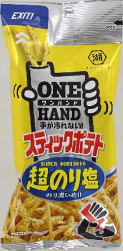 ポテトチップスといえば手が汚されやすく勉強や仕事をしにくいお菓子ですが、このポテチはなんとワンハンドで袋から口に流し込める新スタイルのパッケージです。